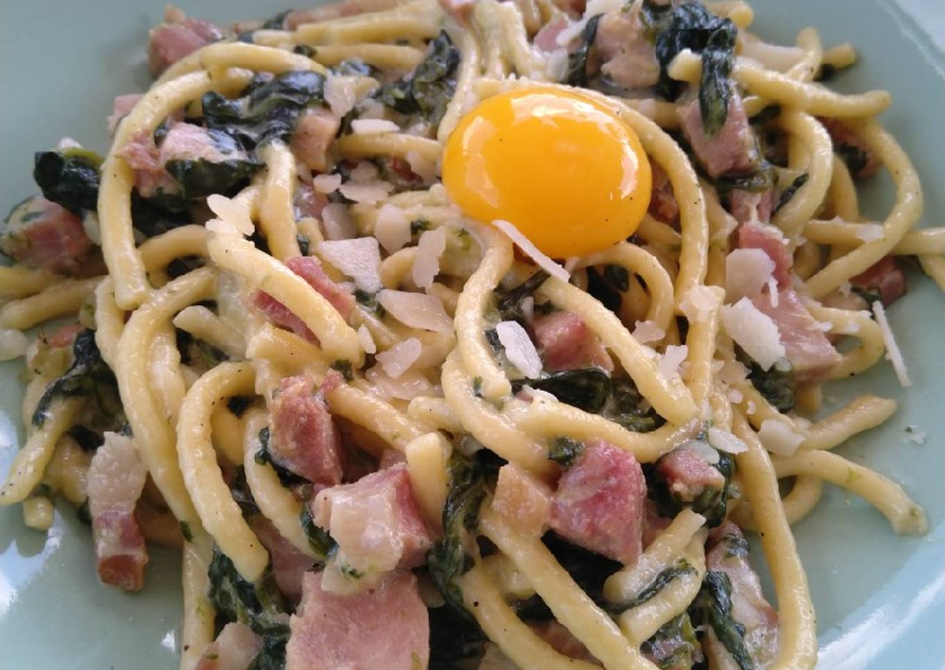 Spatzle épinard jambon et lard, parmesan