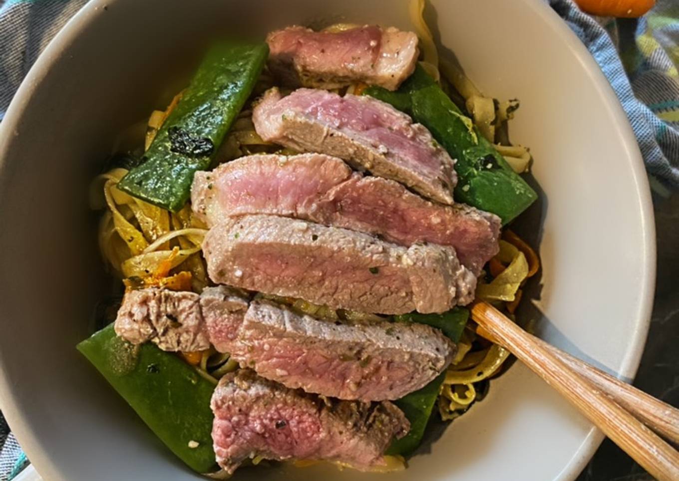 - Coupez votre viande en lamelle, et disposez-la sur vos nouilles. C’est prêt !! Bon appétit 😋 !! 🍜🍲