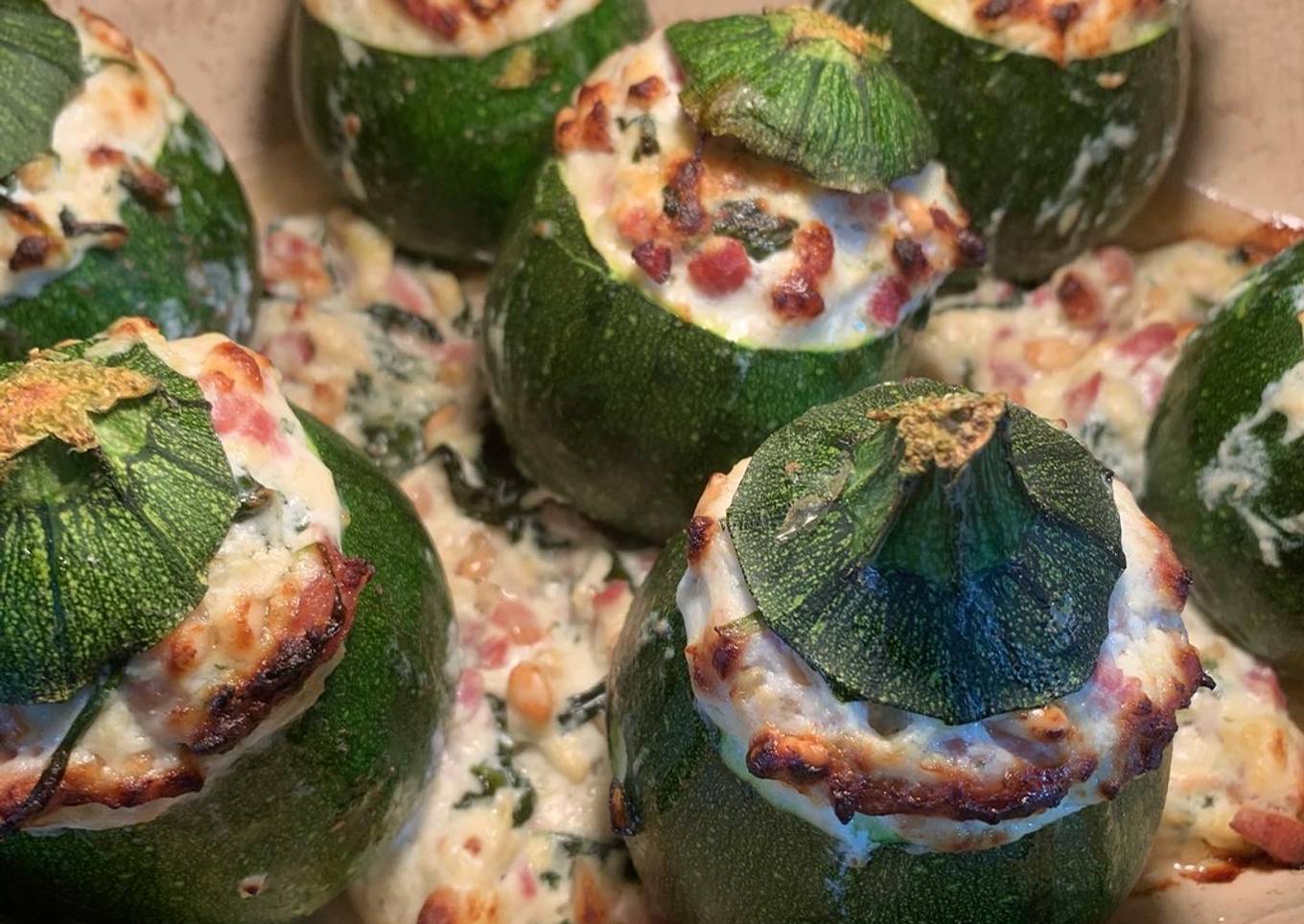 Courgettes rondes farcies aux lardons