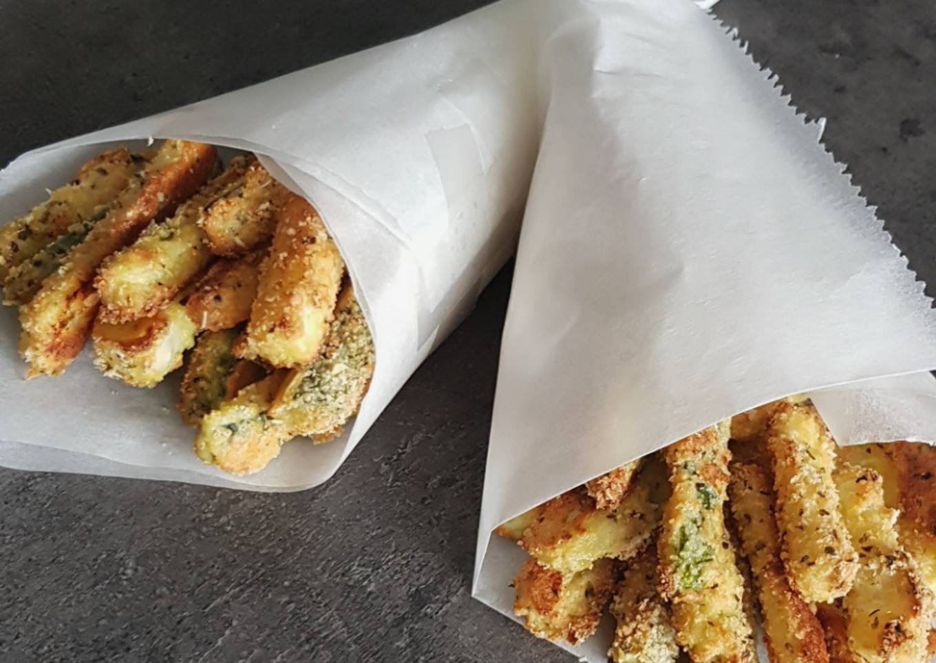 - Préchauffez le four à 200 °. Lavez bien les courgettes sans les éplucher et coupez-les en bâtonnets comme des frites.