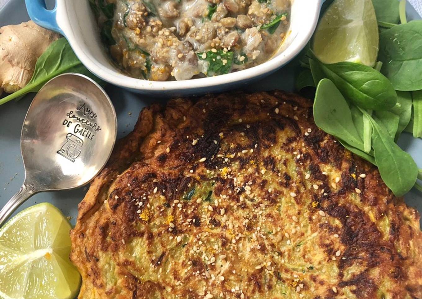 - Velouté : éplucher et mixer le gingembre, le blanc de l’oignon et l’ail. Faire revenir le tout dans une casserole avec un peu d’huile. Ajouter les lentilles puis le bouillon de légumes chaud. Laisser mijoter 15 à 20 minutes.