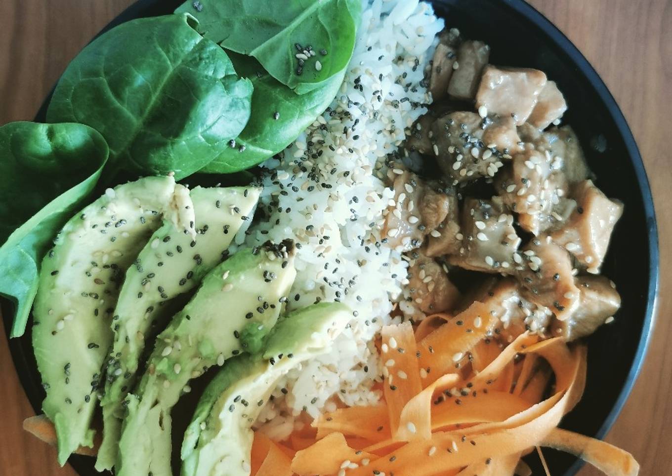 - Dresser en ajoutant le saumon, le riz, l'avocat et les crudités, parsemer de graines de sésames.