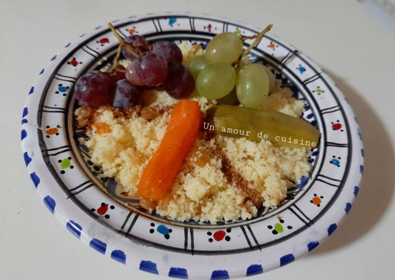 - Servez le couscous chaud agrémenté de legumes, des deux raisins frais et de cannelle en poudre et de sauce.