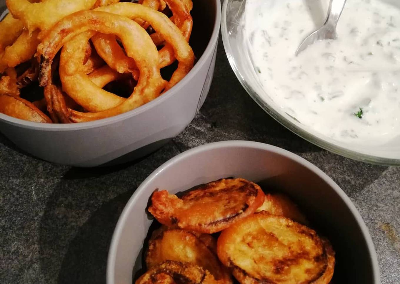 Oignons rings et beignets de courgettes