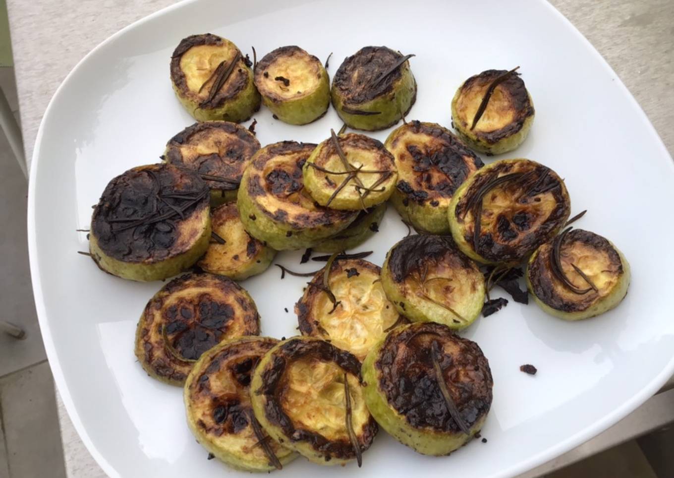 - Laisser mariner 1 heure faire chauffer la plancha poser les courgettes avec le romarin fermer le couvercle laisser cuire 8 minutes