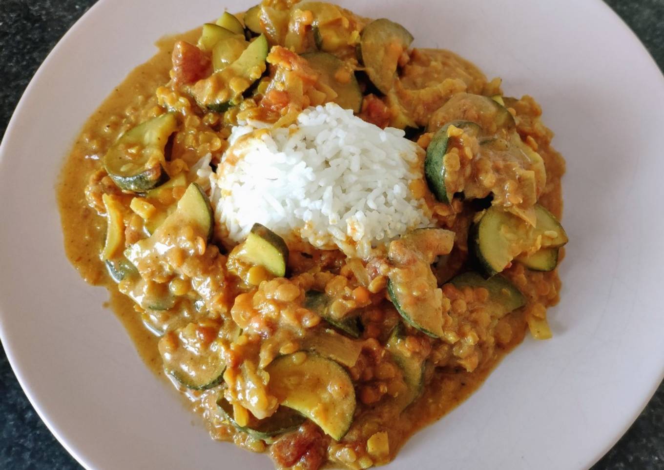 Curry de courgettes et lentilles corail (vegan)
