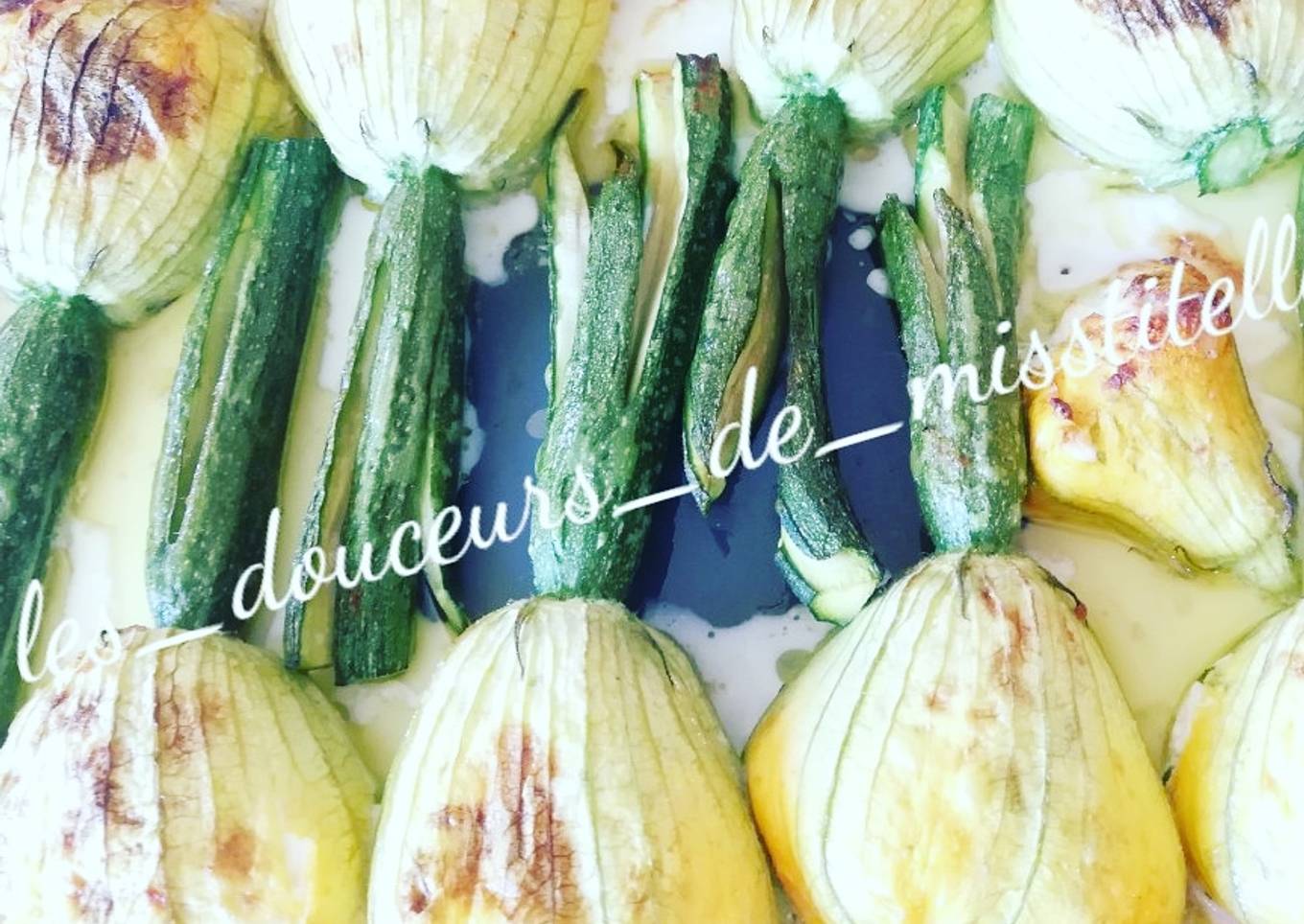 - Déposer les fleurs farcies dans un plat allant au four avec un filet d'huile d'olive dans le fond.