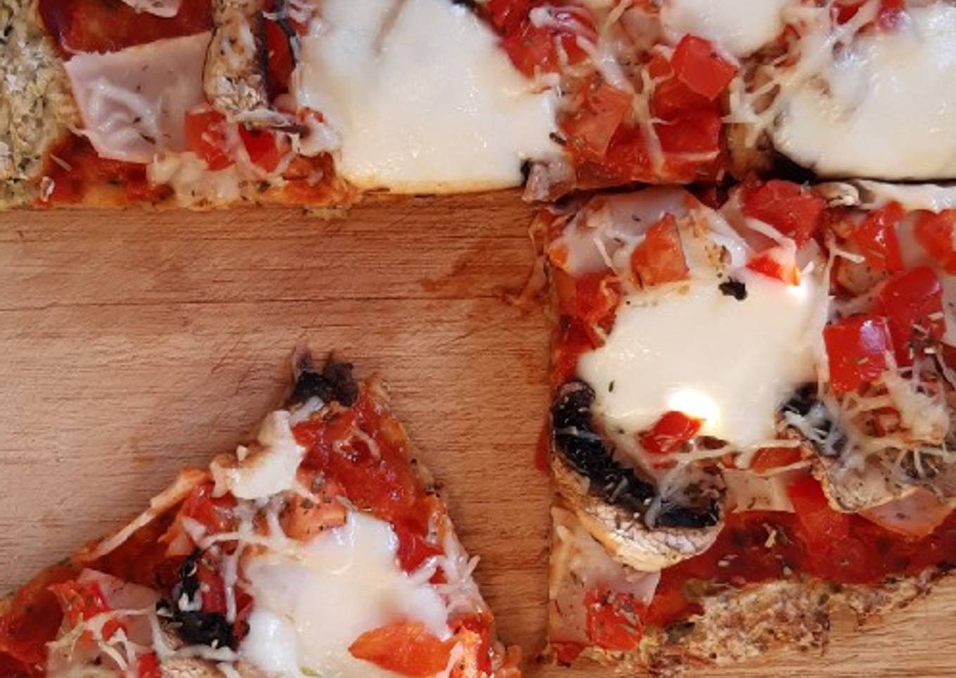 - Une fois la pâte cuite, recouvrir de sauce tomates, disposez les morceaux de jambon, les dés de tomates, les champignons. Saupoudrez d'herbes de Provence, de gruyère râpé. Remettre 10 minutes au four à 180°. Ajoutez la mozzarella, verser un filet d'huile d'olive et remettre au four pour faire fondre la mozzarella.