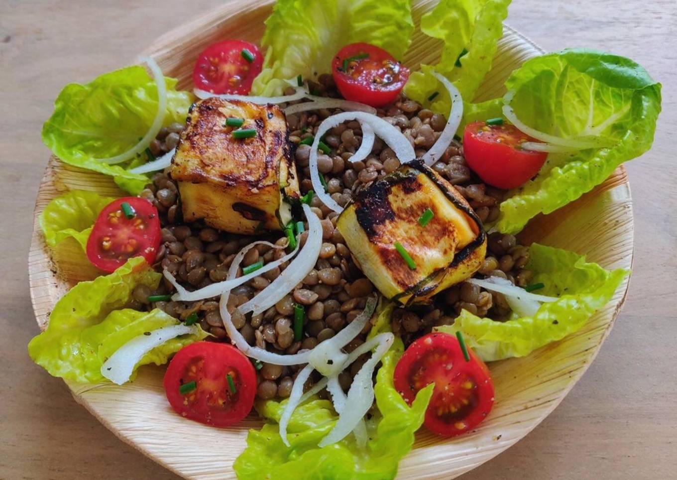 - Dans une poêle chauffée avec l’huile, faire dorer de chaque côté. Servir de suite sur une salade de lentilles tiède !!!!!