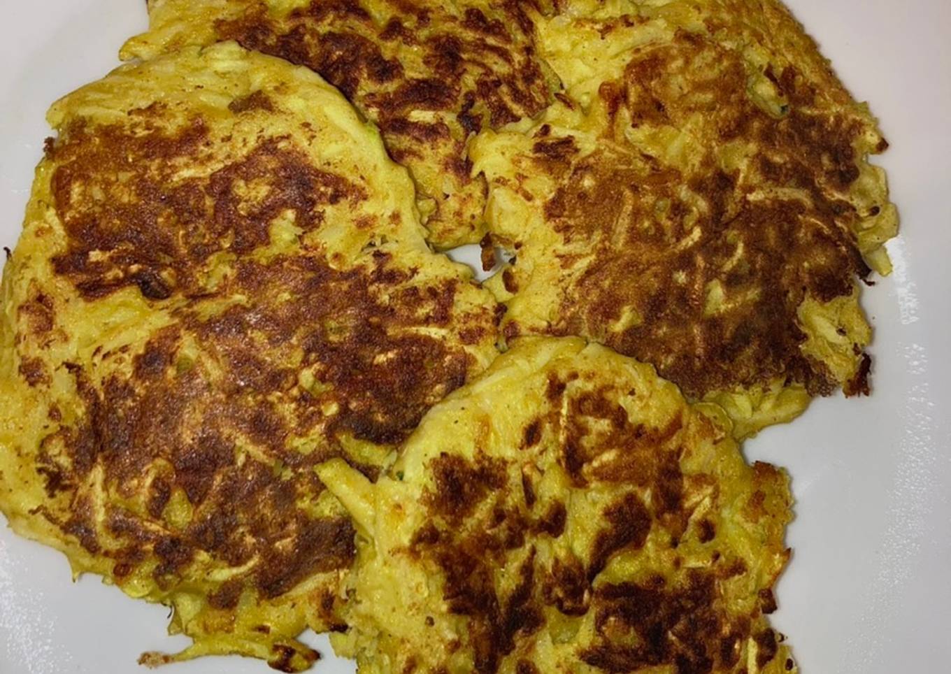 - Dans une poêle chaude et légèrement huilée, déposer des cuillères de préparation et écraser légèrement les tas pour former de belles galettes. Laisser cuire 3 ou 4 minutes par face. Déguster !